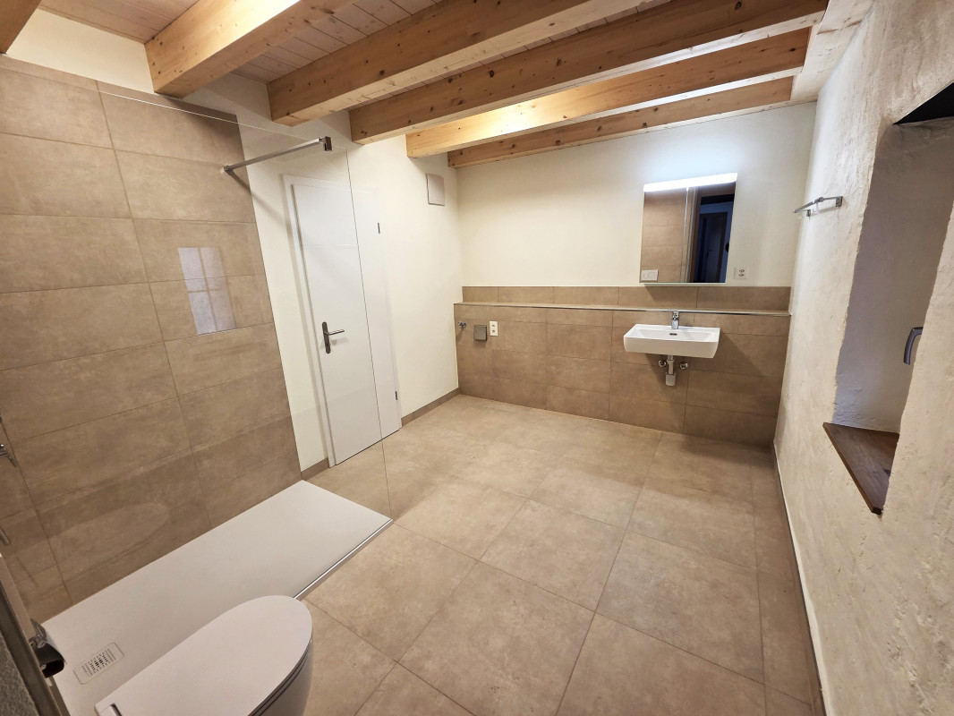 L'appartement de 60 m2 et de 3 pièces comprend ainsi qu’un grand galetas en sous-toiture.