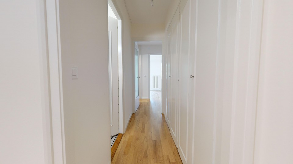 On accède par ascenseur à cet appartement entièrement rénové de 3 pièces ½, situé au 2ème étage.