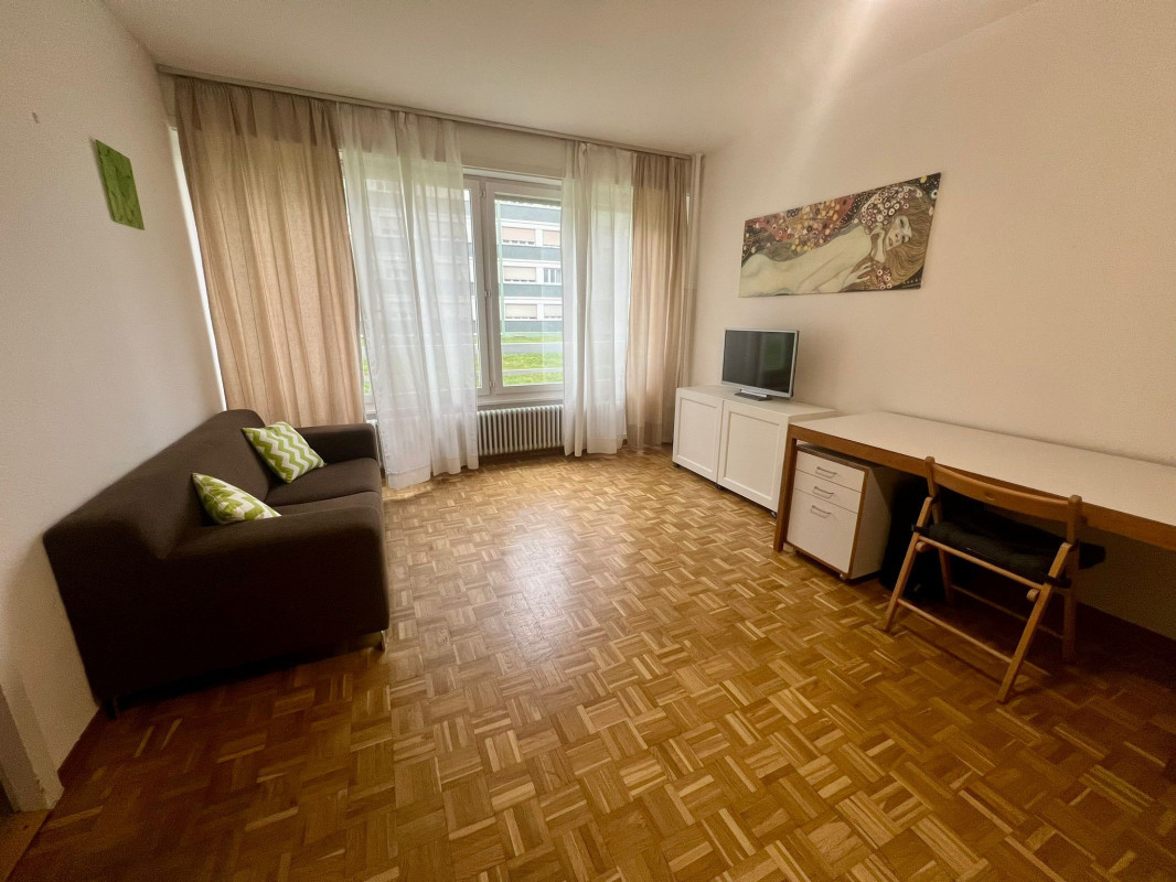 A louer, grand 2 pièces semi-meublé à Meyrin, sur la rue des Vernes, au rez-de-chaussée avec petite terrasse.