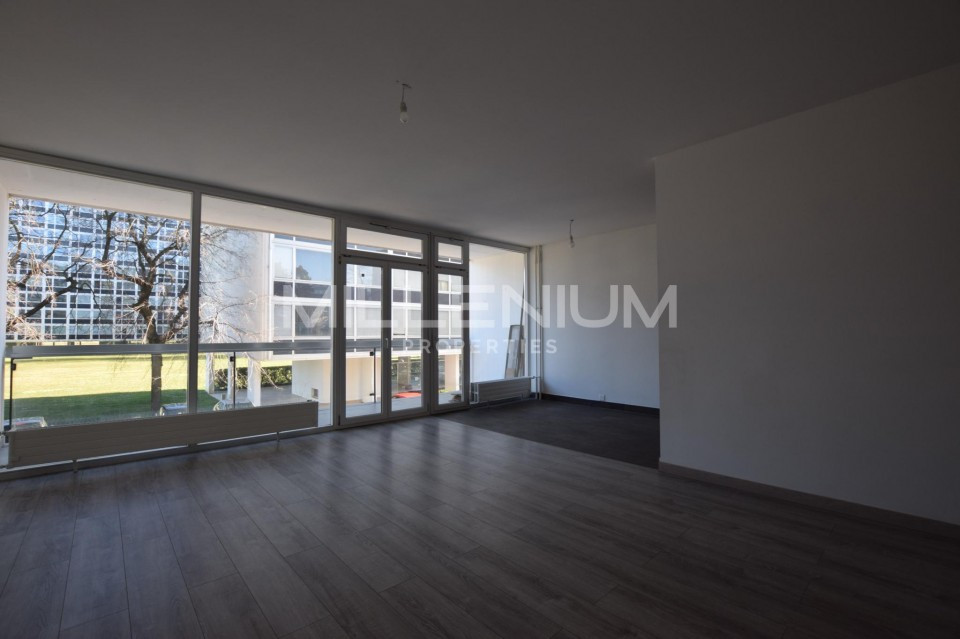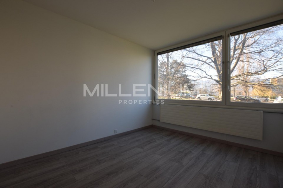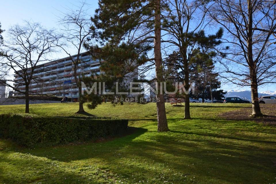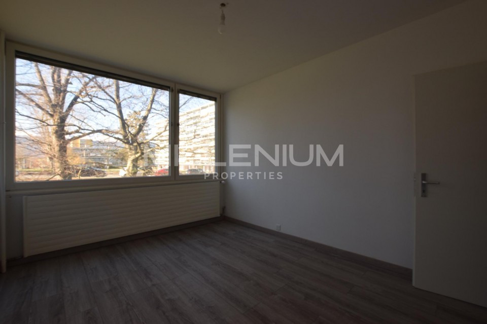 Bel appartement rénové dans le quartier de Meyrin au calme, proche de toute commodité se composant comme suit :