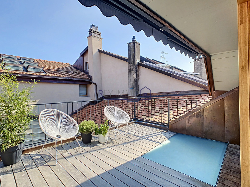 Rey Immo vous propose en exclusivité dans un bâtiment classé, unique et sécurisé avec ascenseur, ce joli appartement de charme de 3,5 pièces au dernier étage avec terrasse.