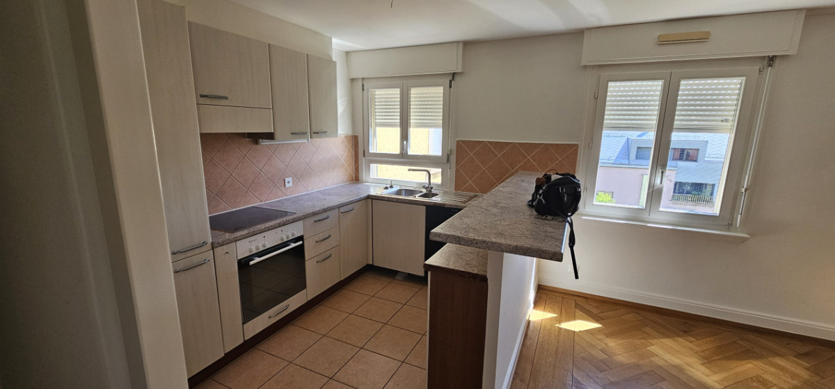 L’appartement se compose comme suit : une cuisine agencée ouverte sur un grand séjour, deux chambres, une chambre parentale avec salle de douche, une salle de bain.