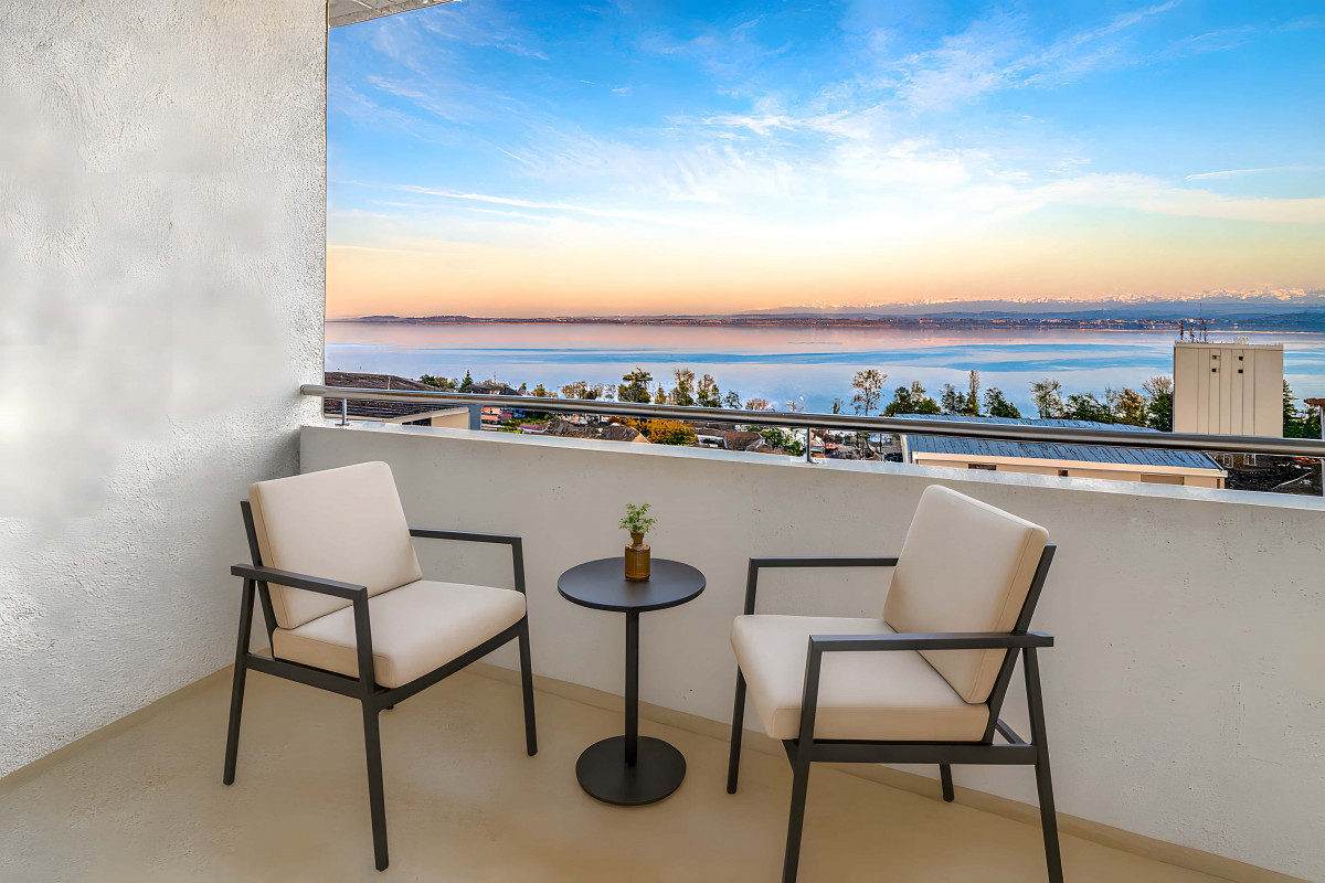 Les balcons orientés lac permettent de profiter pleinement du panorama,