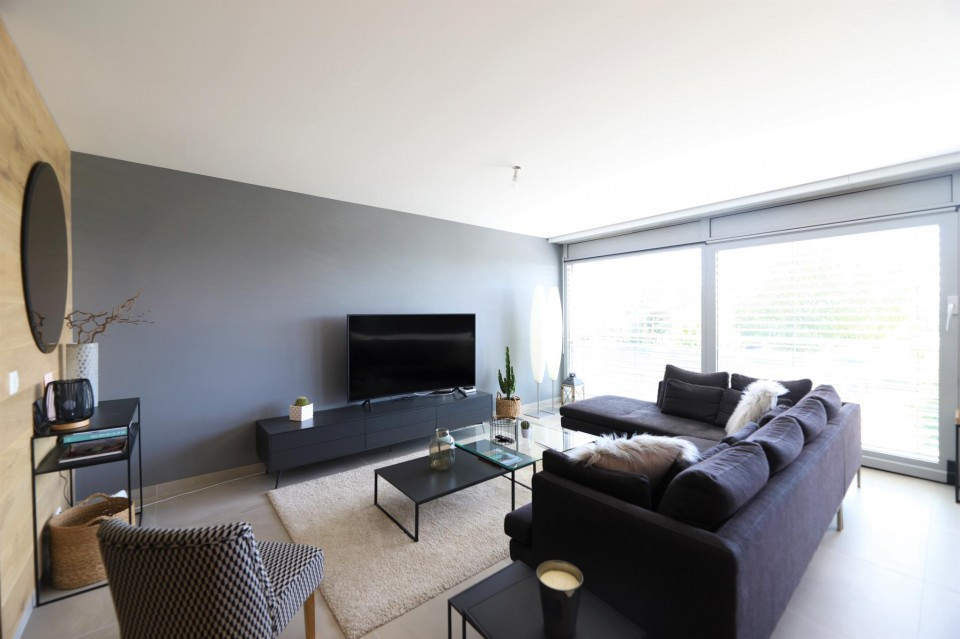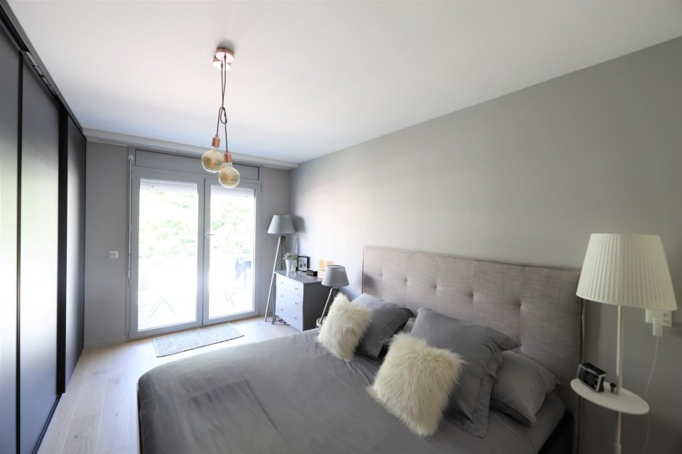 Les plus : Vue panoramique lac, matériaux et équipements de qualité, chauffage au sol, appartement traversant, deux salles de bain.