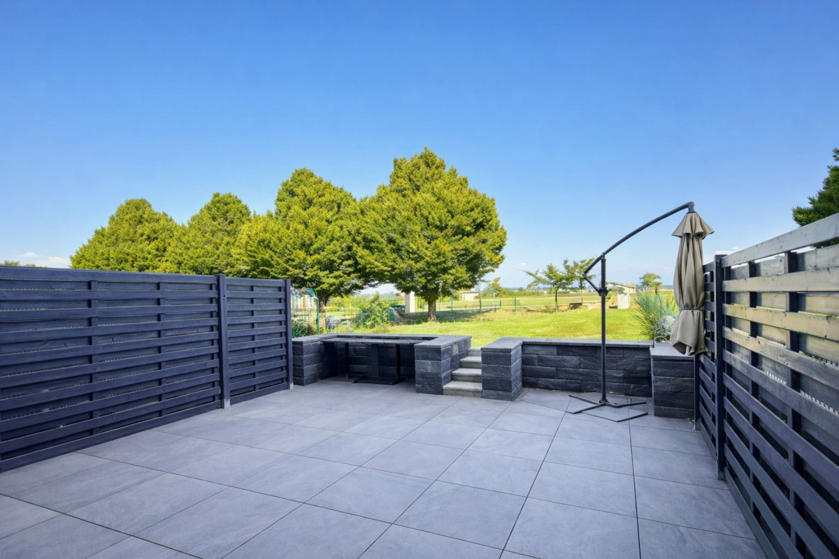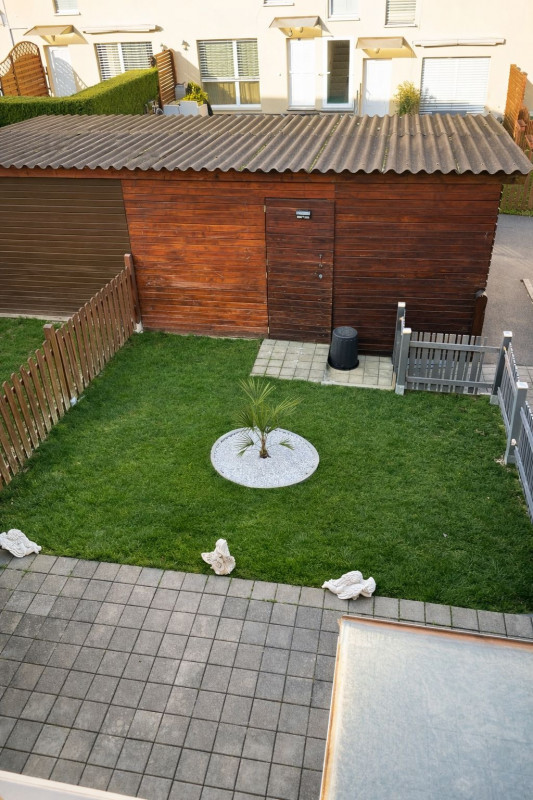 Maison contigüe avec deux jardins