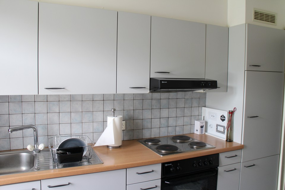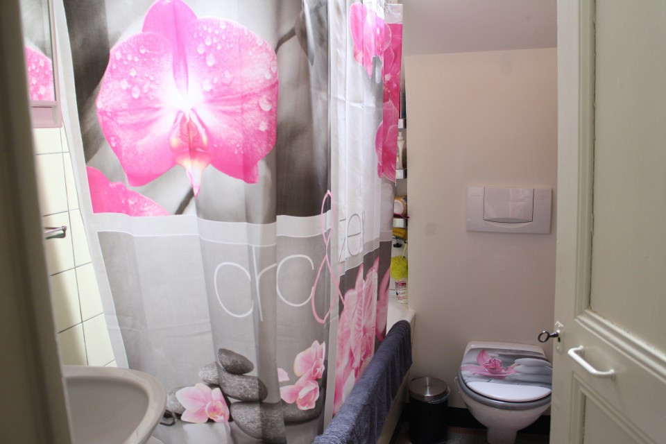 Appartement de 2 pièces au 2ème étage sans ascenseur dans une petite maison familiale avec 3 appartements, composé d'une cuisine agencée et habitable (sans lave-vaisselle) et d'une salle de bains avec baignoire.