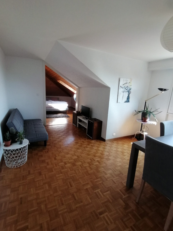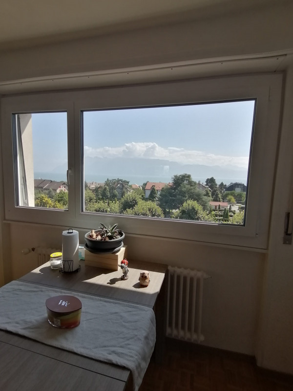 À 5 minutes à pied du bord du lac et des commerces (Migros, Coop, Poste, Pharmacies et Gare CFF) Un arrêt de bus (ligne 4 et 25) en bas de l’immeuble. À 10 minutes du centre-ville de Lausanne.