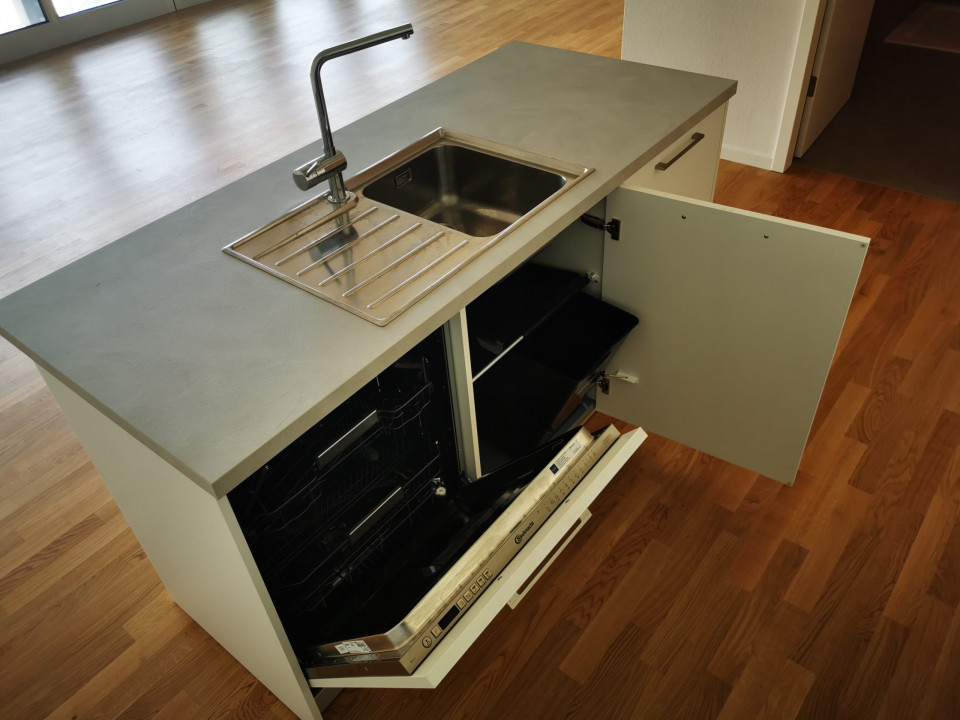 ? Cuisine ouverte (lave vaisselle, four,frigo?) entièrement agencée avec spacieuse pièce de vie