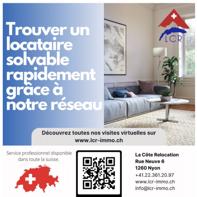 Vous n'avez pas encore trouvé votre logement idéal ? Nous vous invitons à retrouver toutes nos offres sur www.lcr-immo.ch . Gagnez du temps en visualisant nos visites virtuelles 3D !