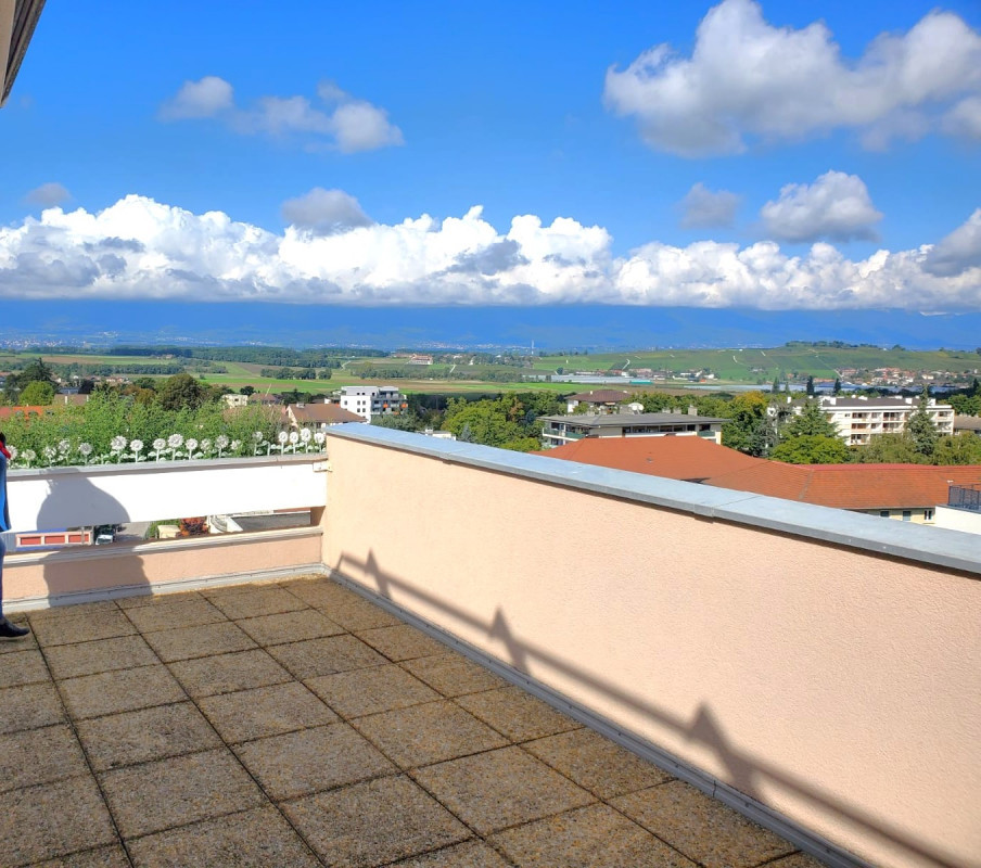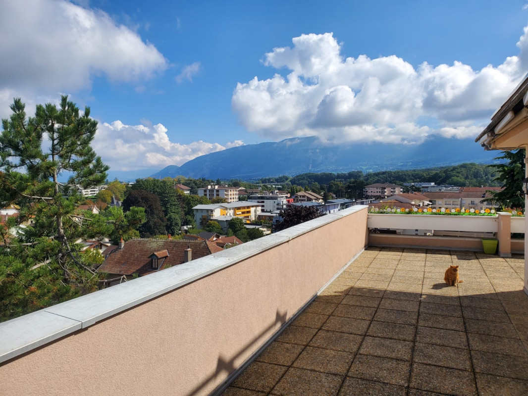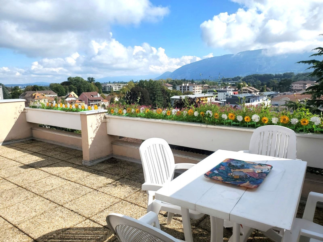 Situé au centre de Saint-Julien-en-Genevois, tout près des commerces à pied, des bus et de la frontière, cet appartement de 2 pièces meublé d'environ 40 m2 + une terrasse de 150 m2 avec une vue panoramique à 180°, conviendra à une personne seule qui veut recevoir ses invités sur cette superbe terrasse dont la vue est à couper le souffle, ou éventuellement à deux étudiants.