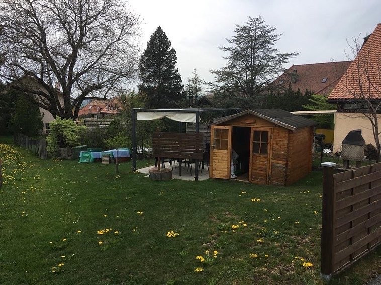 Magnifique jardin à disposition de locataire de 80 m2, avec un cabanon, pergola, 2 carré potager au calme.