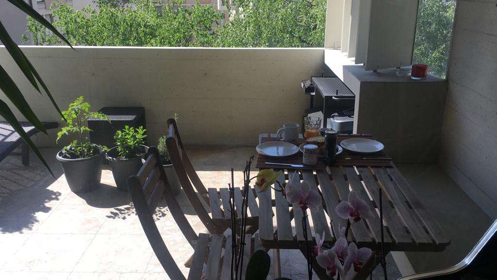 - 2 balcons dont un grand d’environ 12m2 donnant sur un jardin arborisé et une vue dégagée