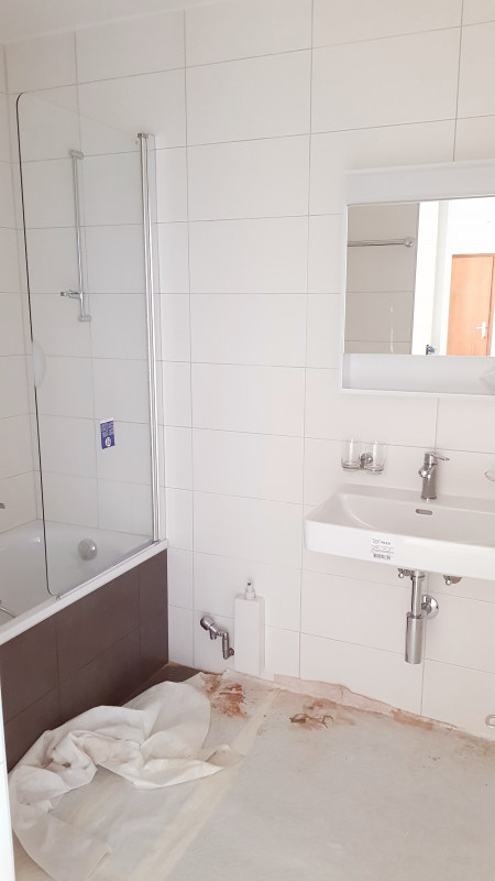 - 1 salle de bain avec baignoire et emplacement pour machine à laver