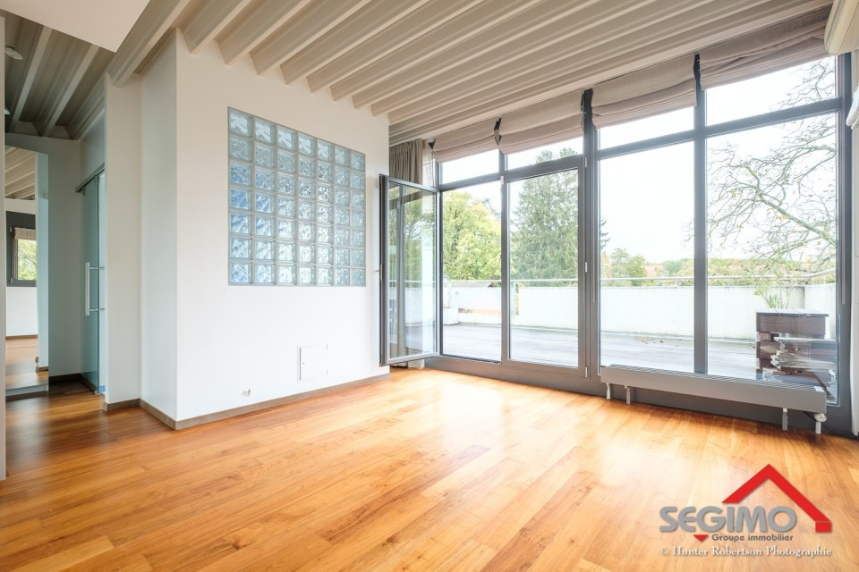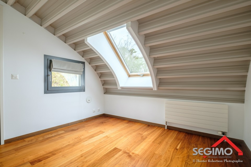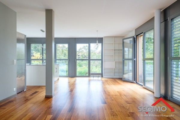 A quelques minutes du centre de Carouge, de Plan-les-Ouates et de la station du CEVA, dans un parc de 27 900 m², à vendre lumineux duplex en attique, style loft, avec une vue dégagée sur la nature et le Salève.