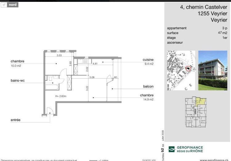 Charges (eau, électricité, chauffage, internet) : 190 chf / mois.