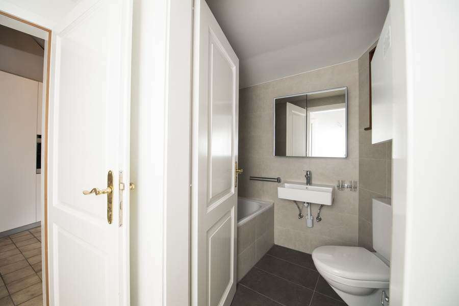 Buanderie privative et branchement pour colonne de lavage dans la salle de bain.