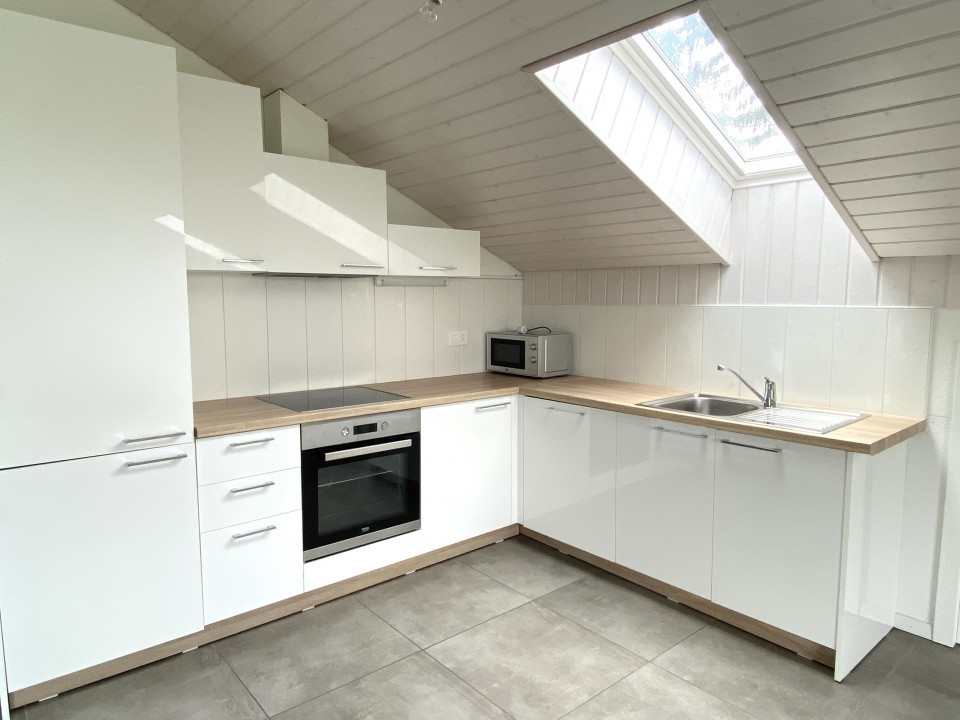 A louer à Vuisternens-devant-Romont, à 10 minutes de la sortie de Vaulruz et de Romont, charmant appartement de 2.5 pièces d'env. 70 m2 dans les combles d'un petit immeuble locatif construit en 2019.