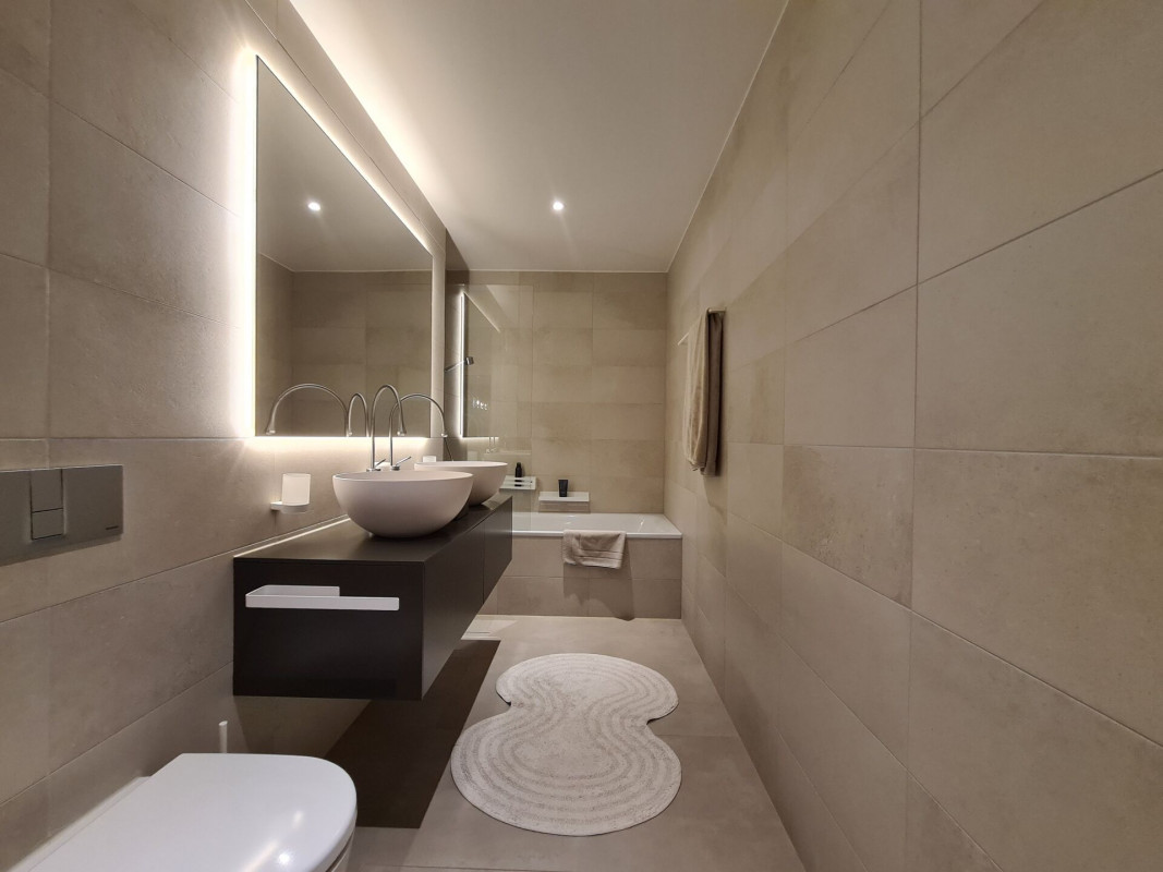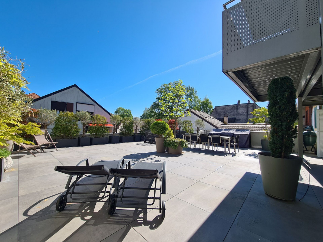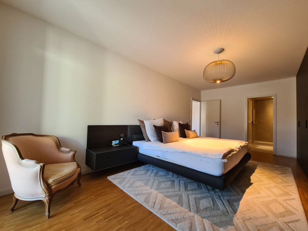 L'appartement bénéficie d'un excellent confort acoustique grâce à des fenêtres en triple vitrage, garantissant une tranquillité optimale. Les chambres offrent un accès direct à une magnifique terrasse de 120 m², véritable havre de paix, entièrement au calme et entourée de verdure.