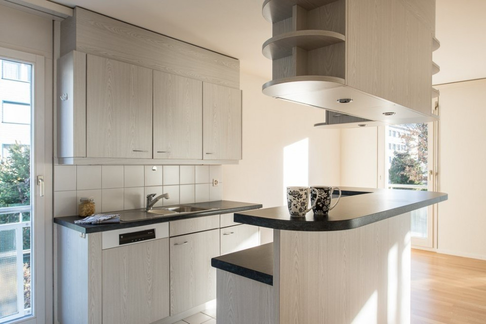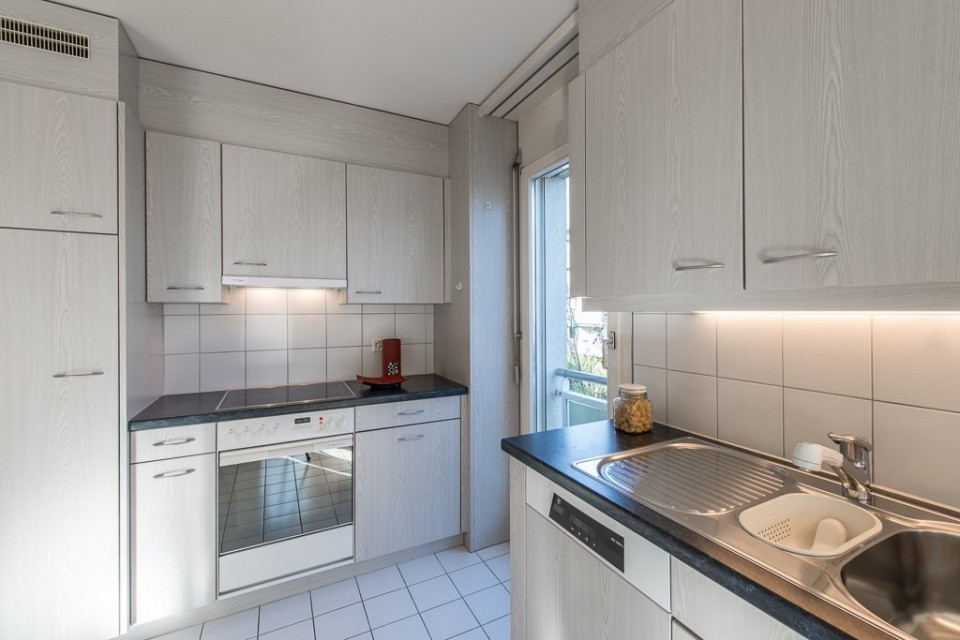 • Küche und Nasszellen mit pflegeleichtem Plattenboden