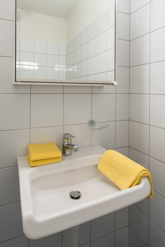 • Separates WC mit Lavabo, Spiegelschrank und Dusche
