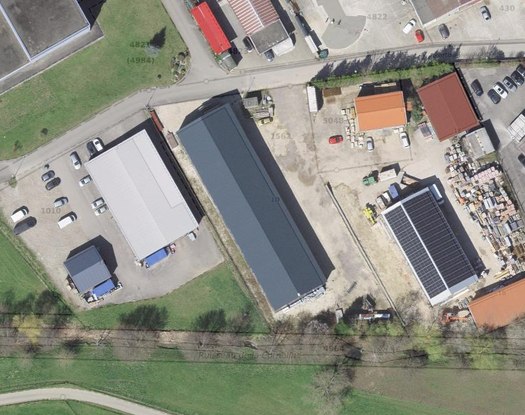 Dépôt / atelier env. 100 m² avec grande porte sectionnelle (env. 3,50 × 3,80 m). Hauteur intérieure env. 4,5?5 m.