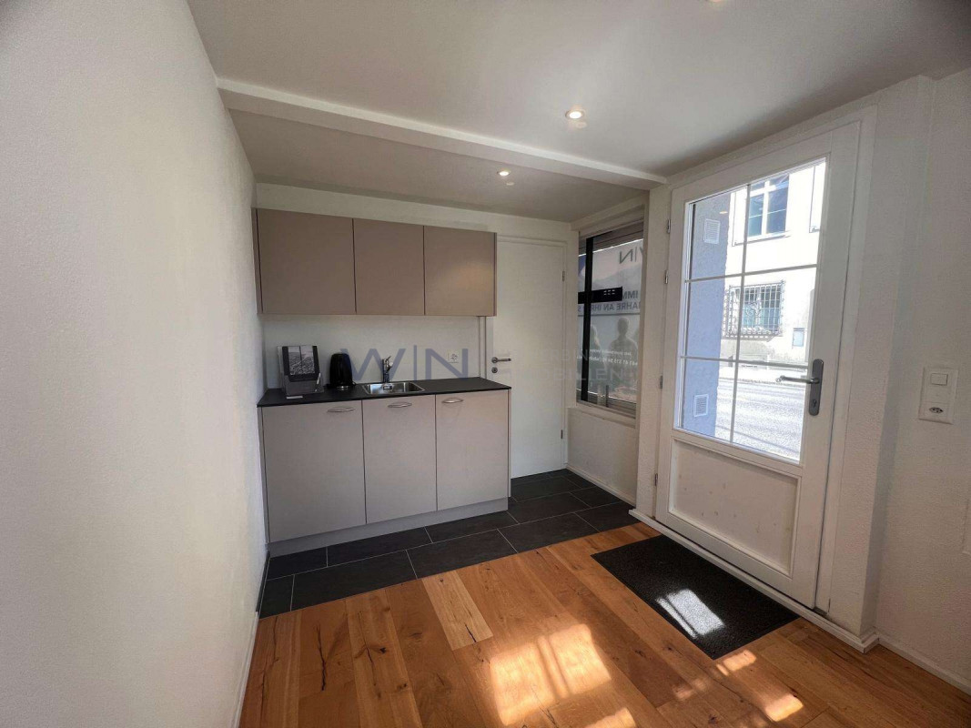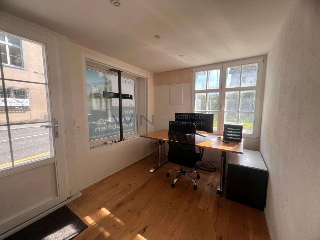 Das Büro überzeugt durch helle Räumlichkeiten, eine angenehme Arbeitsatmosphäre sowie eine praktische Raumaufteilung. Grosse Fenster sorgen für viel Tageslicht und schaffen ein freundliches Arbeitsumfeld.