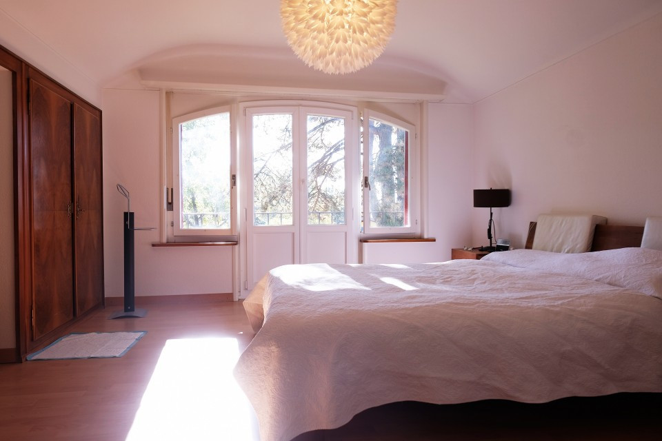 AU PREMIER ETAGE : 3 chambres (16m2, 14 et 9m2) avec armoires encastrées et réduis (ou un coin de jeu pour enfant). Une salle de bain avec baignoire. Vue plongeante sur toute la ville d'Yverdon, le lac et le Jura.