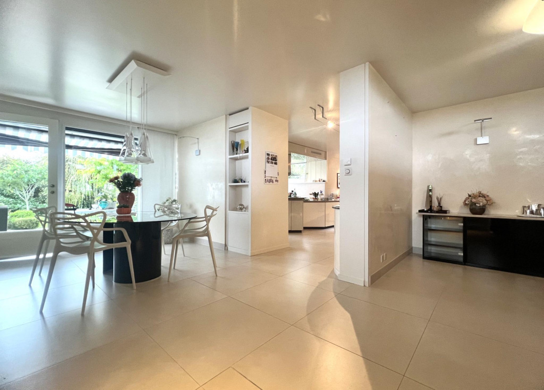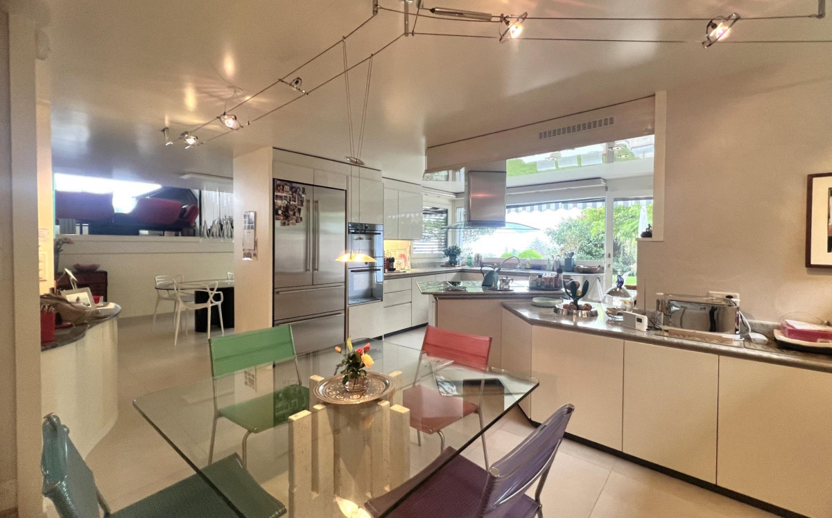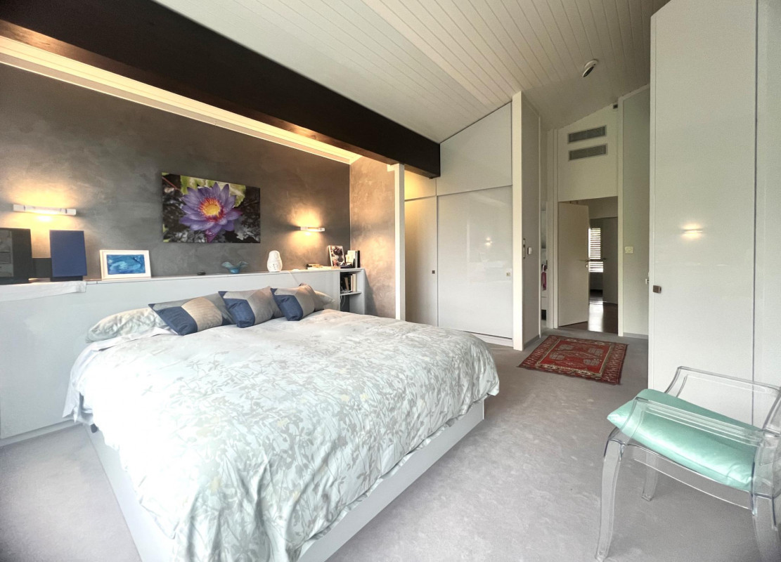 Cette villa individuelle d'architecte se compose de grands espaces répartis sur plusieurs demi-niveaux, avec une belle hauteur sous plafonds. La luminosité est optimale grâce aux nombreuses baies vitrées et les matériaux y sont de grande qualité.