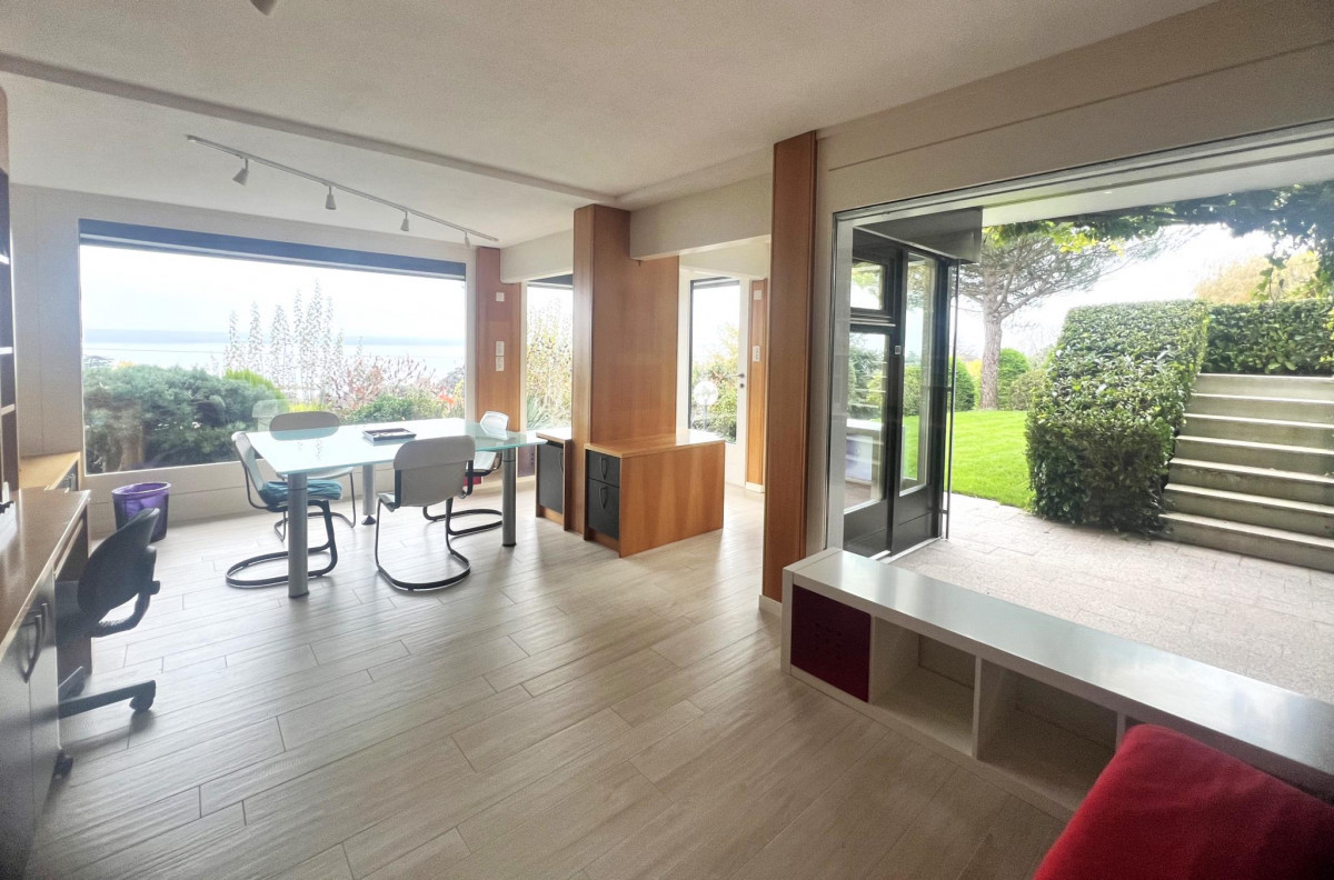 Cette villa individuelle d'architecte se compose de grands espaces répartis sur plusieurs demi-niveaux, avec une belle hauteur sous plafonds. La luminosité est optimale grâce aux nombreuses baies vitrées et les matériaux y sont de grande qualité.Son orientation permet de profiter de la vue splendide sur le lac, les Alpes et le Mont-Blanc, depuis la plupart des pièces.La parcelle est aménagée...