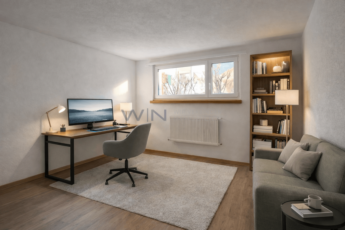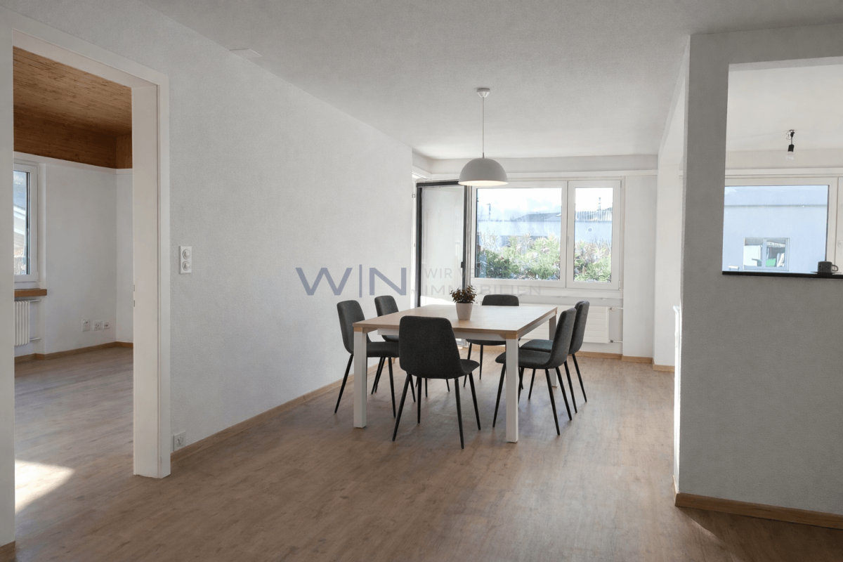Grosszügige Flächen, viel Tageslicht und eine offene Struktur schaffen eine Wohnatmosphäre, die sofort überzeugt. Die Küche mit Essbereich bildet den Mittelpunkt des Hauses: offen, einladend und ideal für Alltag, Familie und Gäste. Die Räume sind klar gegliedert, gut nutzbar und vermitteln Ruhe und Ordnung.