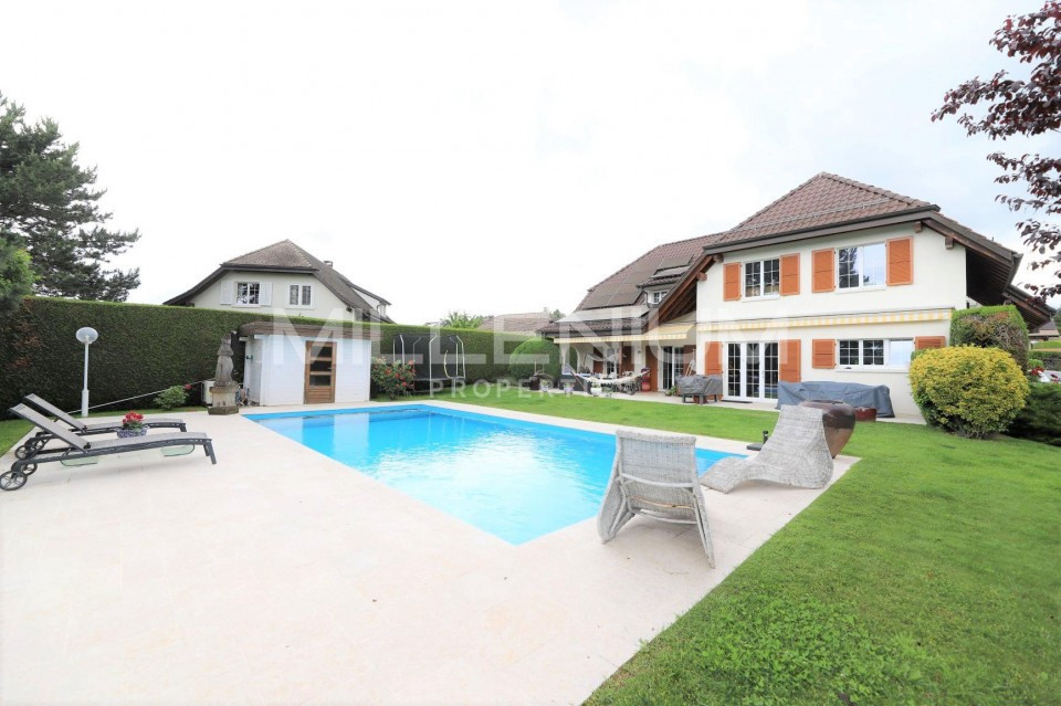 Situé dans un quartier résidentiel dans la commune de Founex, cette belle maison avec piscine de 9 pièces sur 450 m2 utiles est proche de toutes commodités, à 2 mn en voiture de Manor à 5mn à pied de l'école de La Chataigneraie, et à 10 mn de l'aéroport de Genève.