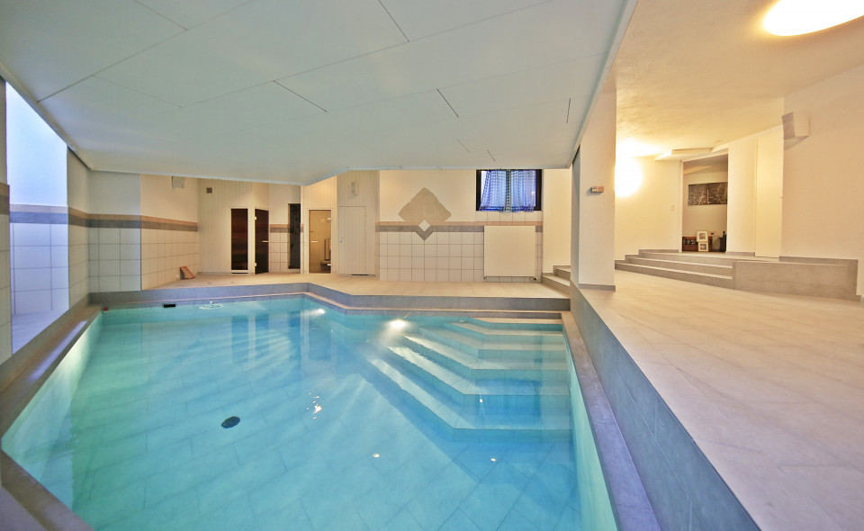 Sauna, hammam, indoor heated swimming pool, large garden with games for children