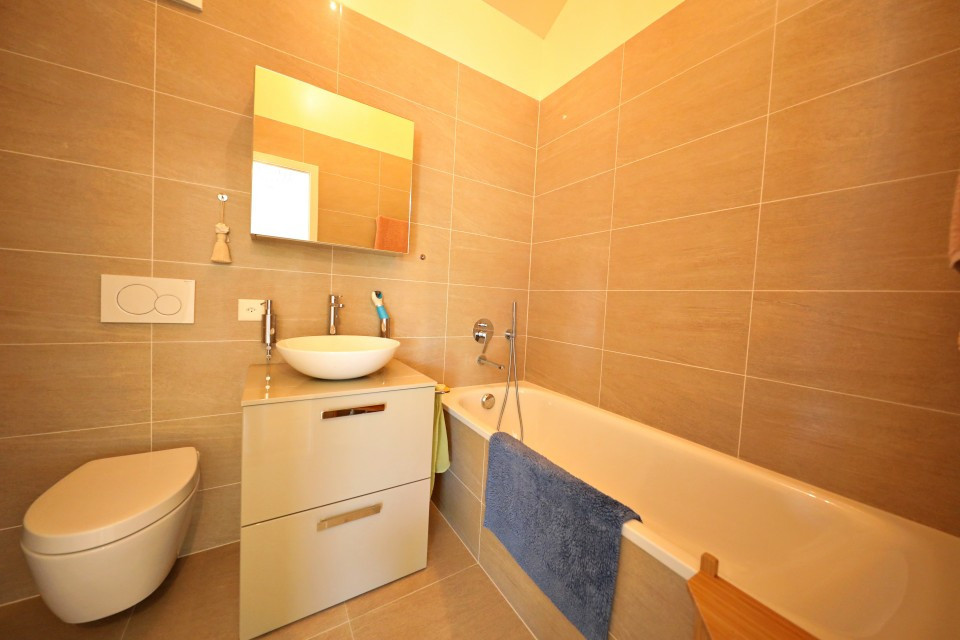 premier étage : de deux belles chambres avec accès à la terrasse et d'une salle de bain avec baignoire/WC et d'une salle de douche.
