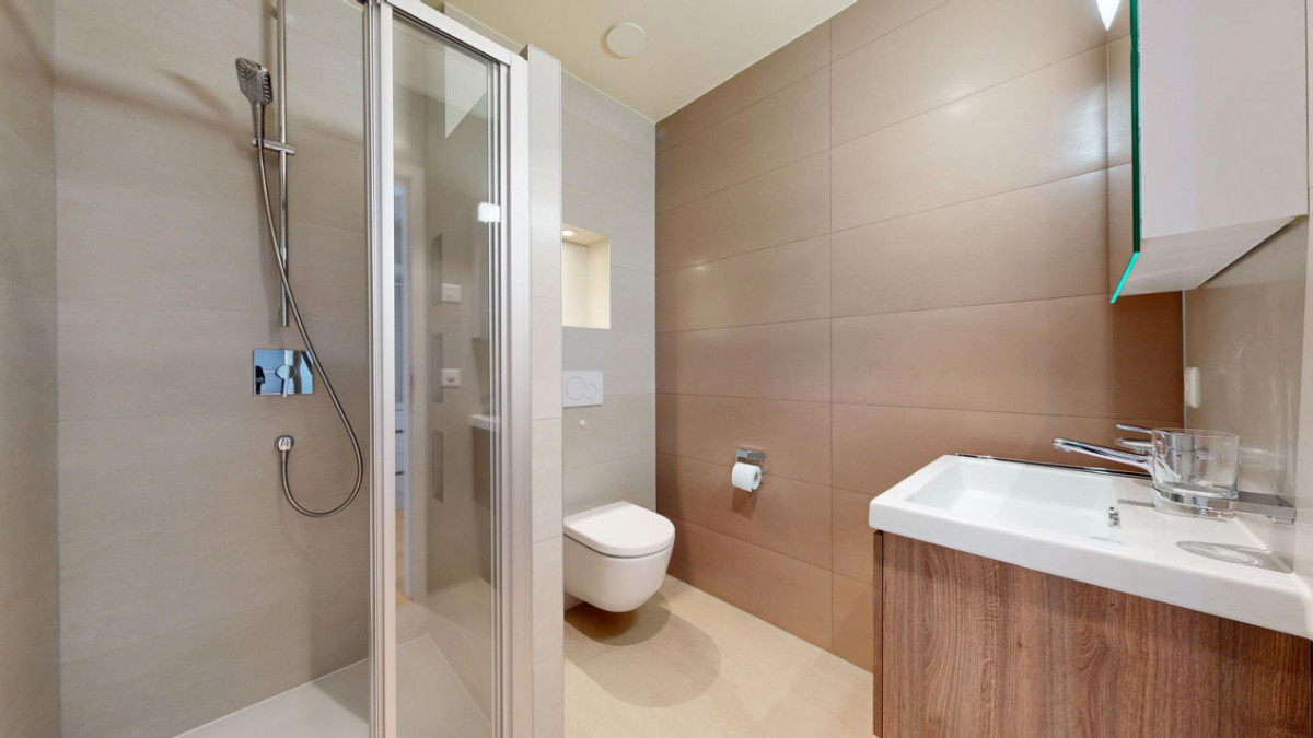 De même, la suite parentale offre un véritable cocon privé : vaste chambre avec terrasse, dressing aménagé et salle de bain attenante équipée d’une baignoire, d’une douche à l’italienne et d’un WC. Cette suite master, avec ses finitions raffinées, invite à la détente face au panorama exceptionnel.