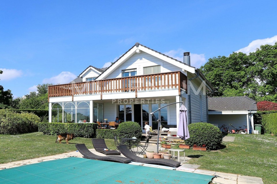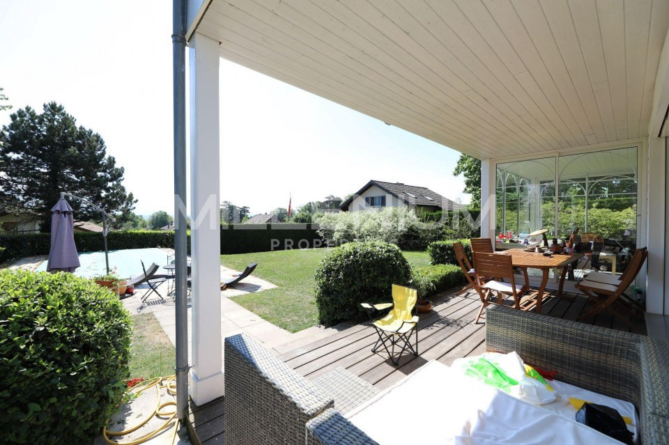 Situé dans un quartier résidentiel au calme à Versoix, cette belle maison familiale de 5 chambres convient parfaitement à une vie de famille autant à l'intérieur par la distributions des espaces de vie qu'à l'extérieur avec un superbe jardin de près de 1000 m2 et une superbe piscine.