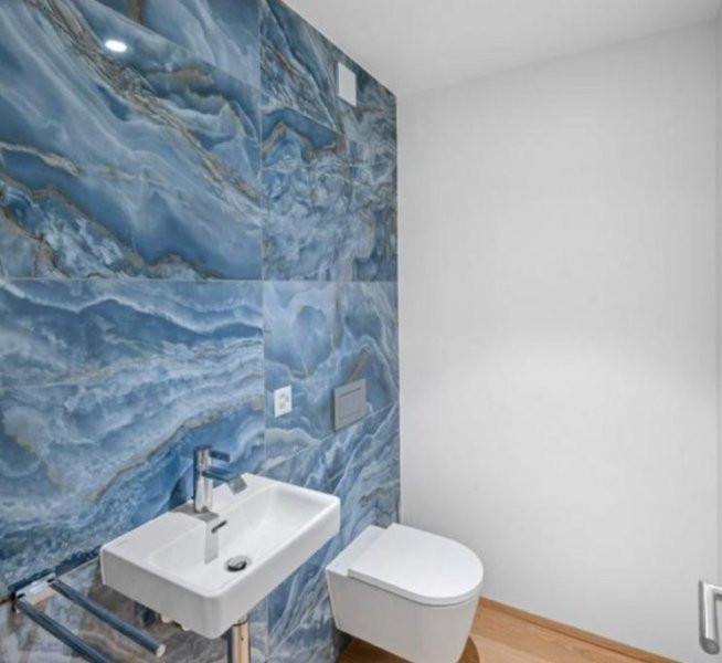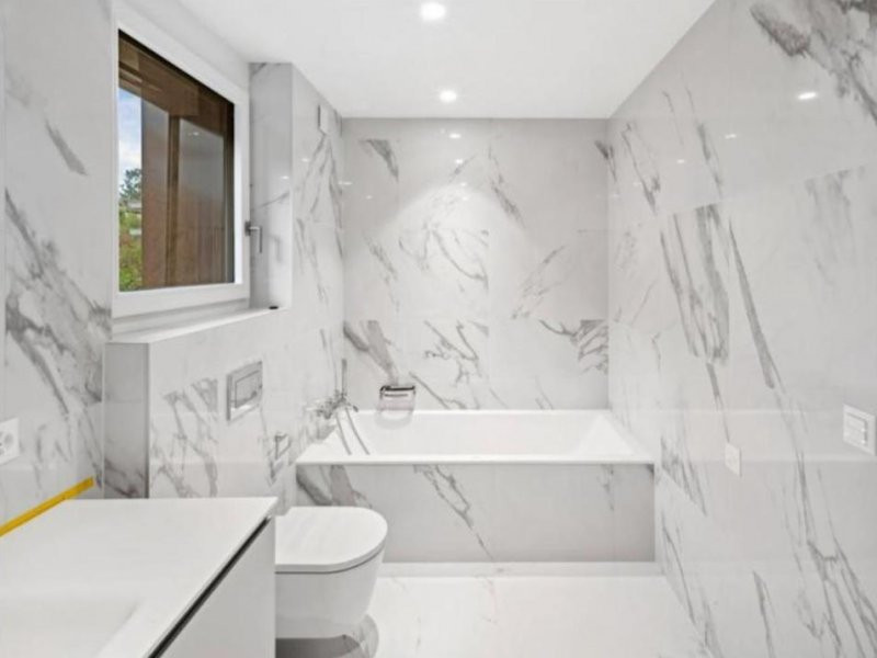 Matières de qualité avec parquet en chêne, carrelage en marbre et onyx dans les salles de bains, THPE, chauffage au sol, triple vitrage, stores électriques.